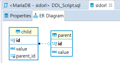 parent와 child라는 2개의 테이블을 생성할 것입니다.