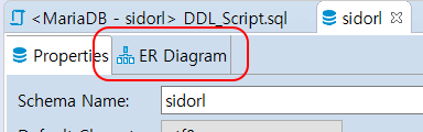 2. 처음 메뉴는 Proerties로 Database에 관한 정보이고, ER Diagram을 선택해줍니다.
