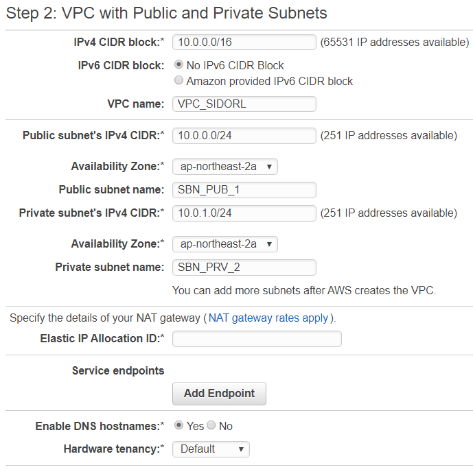 다음 옵션에는 NAT gateway와 Endpoints가 있습니다. Endpoints는 Wizard에서 생성하지 않고 추후 생성하면서 내용 추가를 하겠습니다.
