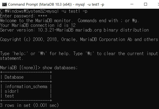 이상으로 윈도우 환경에서 mariaDB 설정을 마쳤습니다.